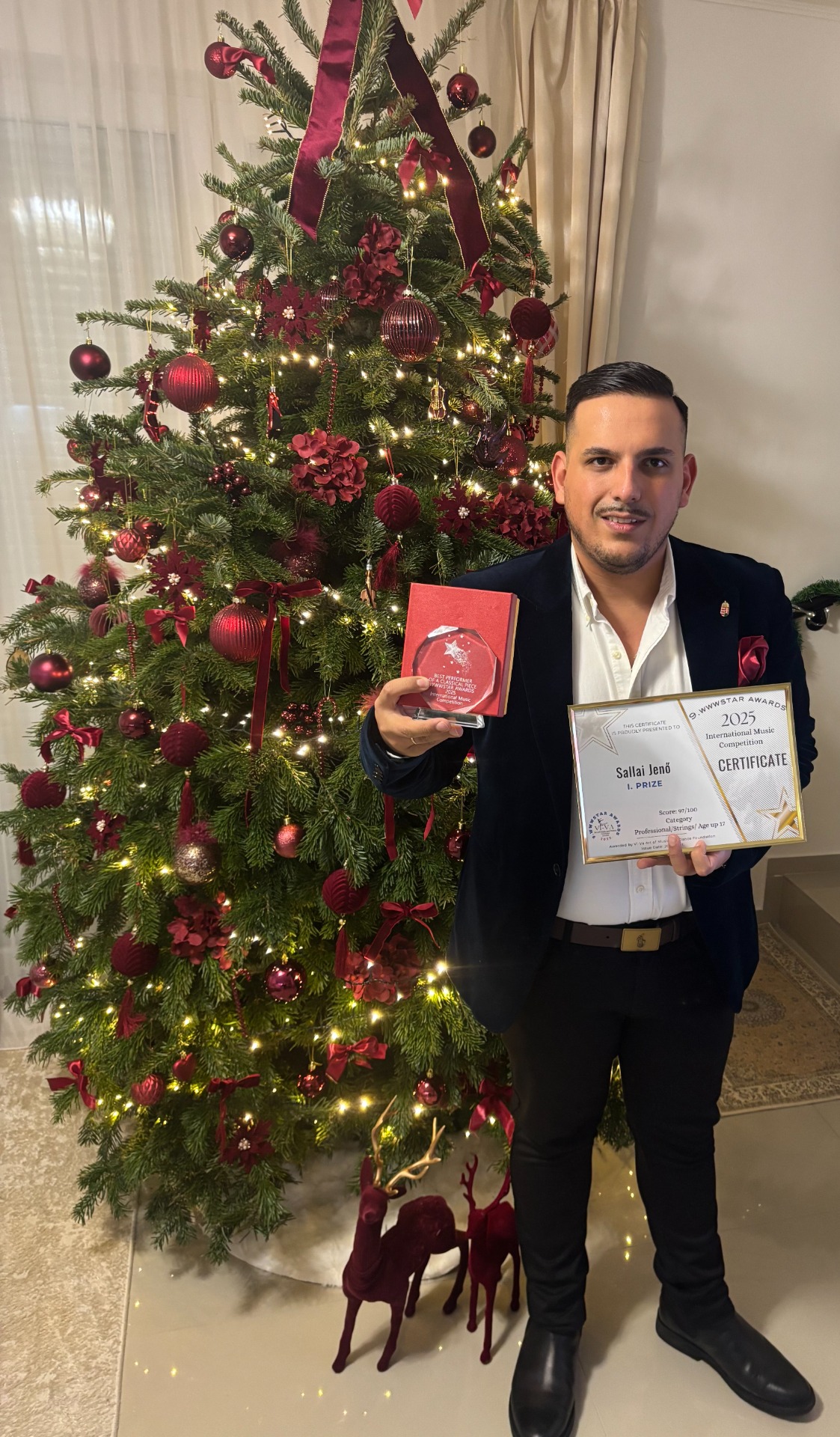 A 9. WWWSTAR Awards – 2025 International Music Competition professzionális, nemzetközi mezőnyben zajló megmérettetés volt, amely számomra kifejezetten nagy szakmai kihívást jelentett. Különösen megtisztelő, hogy ebben az erős versenyhelyzetben I. díjban részesültem (97/100 ponttal), valamint különdíjként elnyertem a "Best Performer of a Classical Piece" elismerést is. Ezek az eredmények számomra fontos szakmai visszaigazolást jelentenek arra, hogy egyénileg is tudatosan és sikeresen fejlesztem, építem szólista karrieremet, még akkor is, amikor párhuzamosan két intézményben végzek oktatói munkát alap- és középfokon. A díjak megerősítik azt az egyensúlyt, amelyet az aktív előadóművészi jelenlét és a pedagógiai hivatás között képviselek.